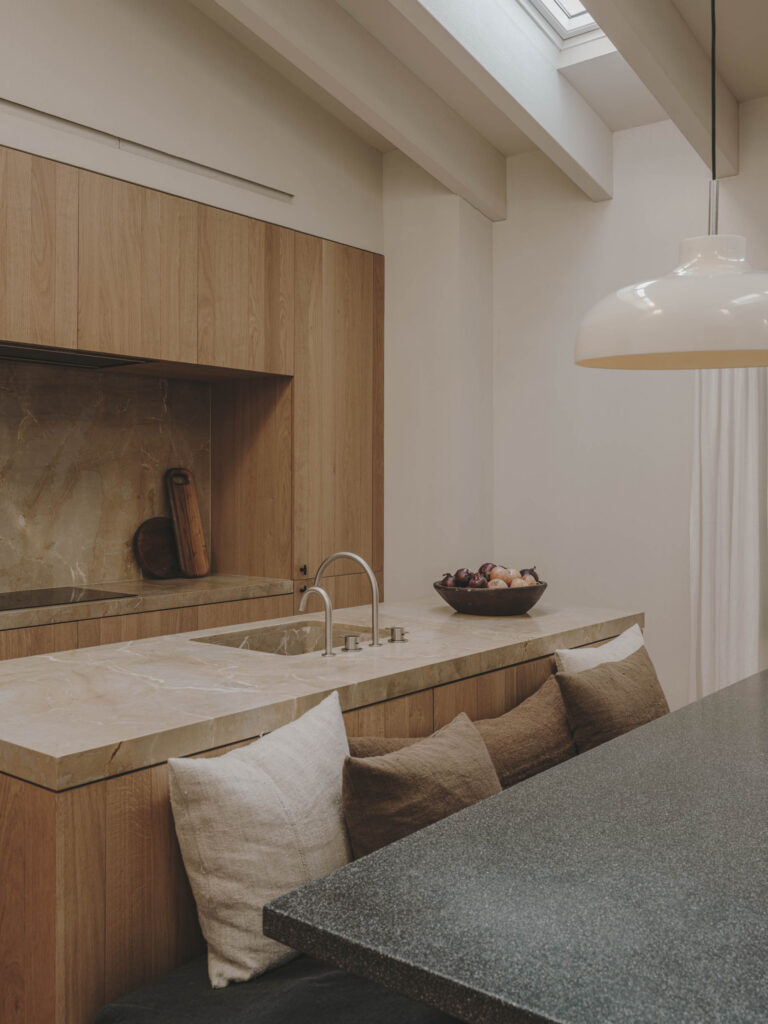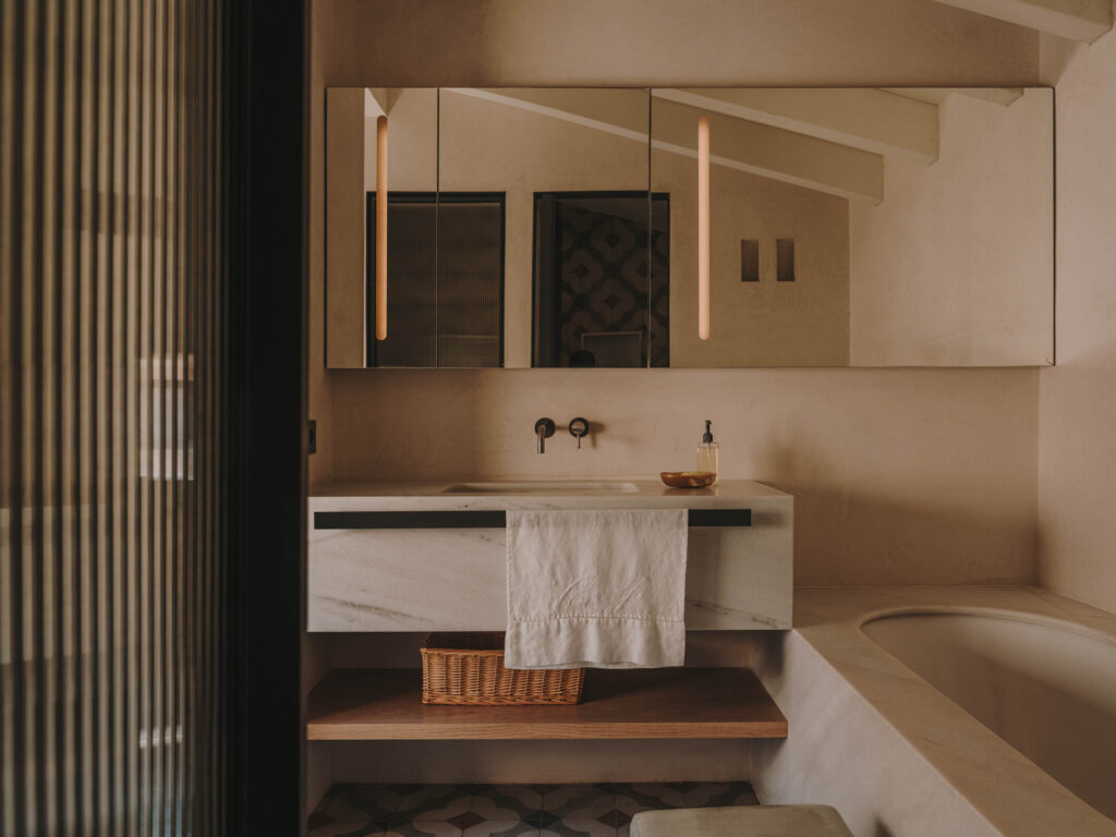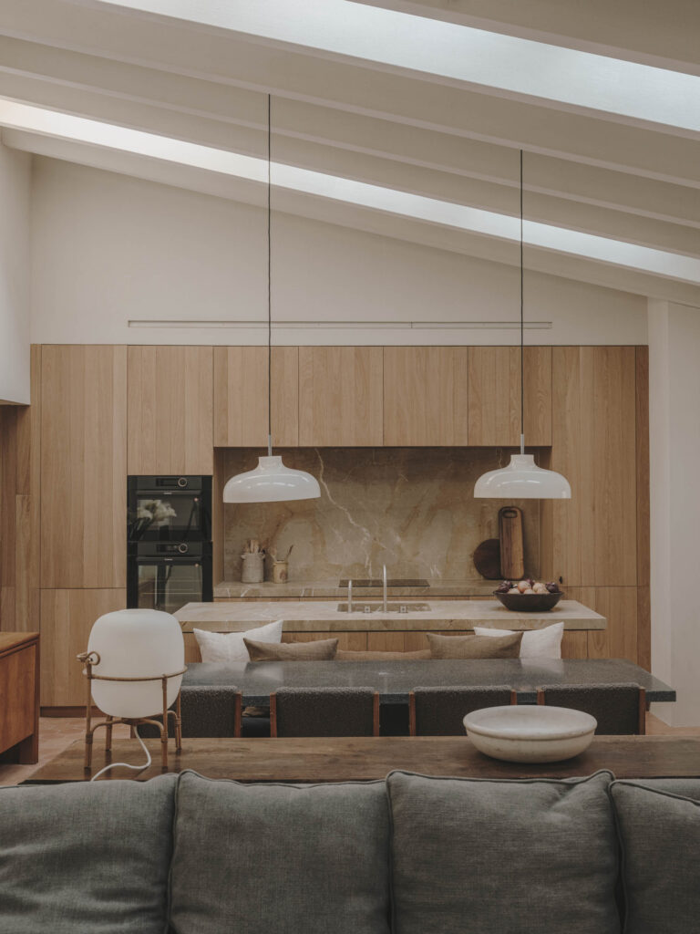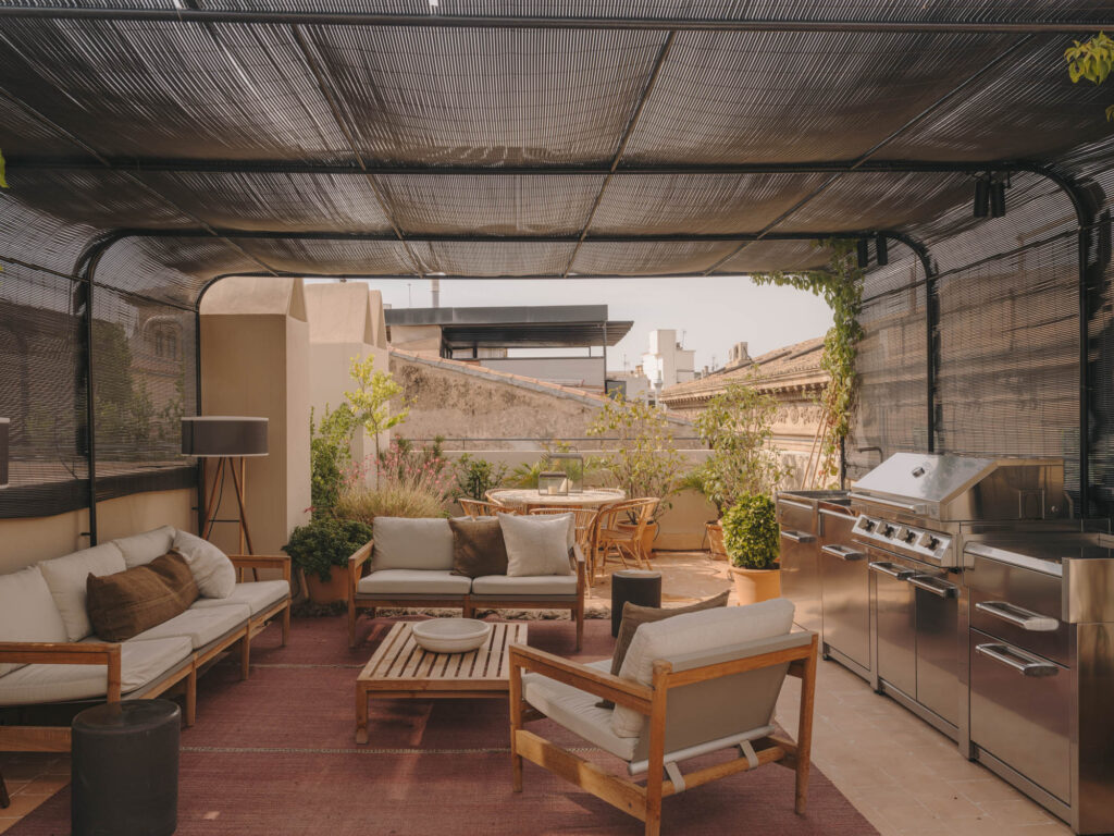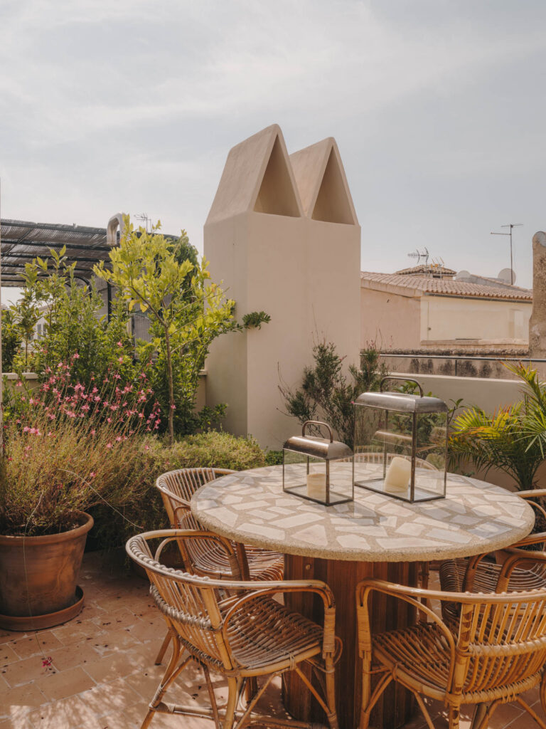 Duplex apartment of 260m² located on the third floor with access through the communal courtyard. The lower floor of the apartment houses the common areas and bedrooms, while the upper floor features the laundry room and terrace.